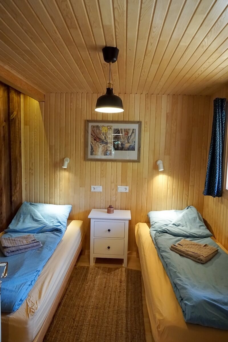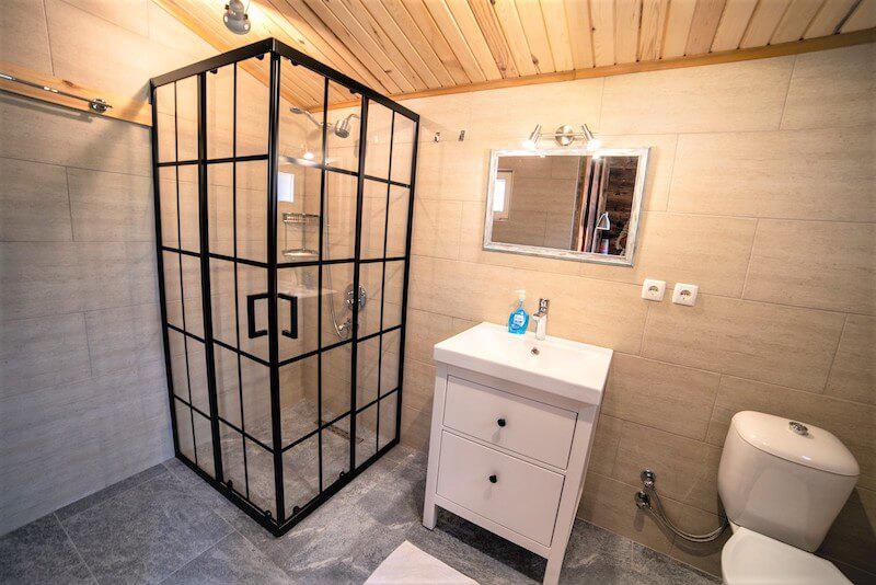 modern bungalows with comfortable beds, a wooden oven, storage and a private terrace under the roof. Brand new, luxury private bathroom.