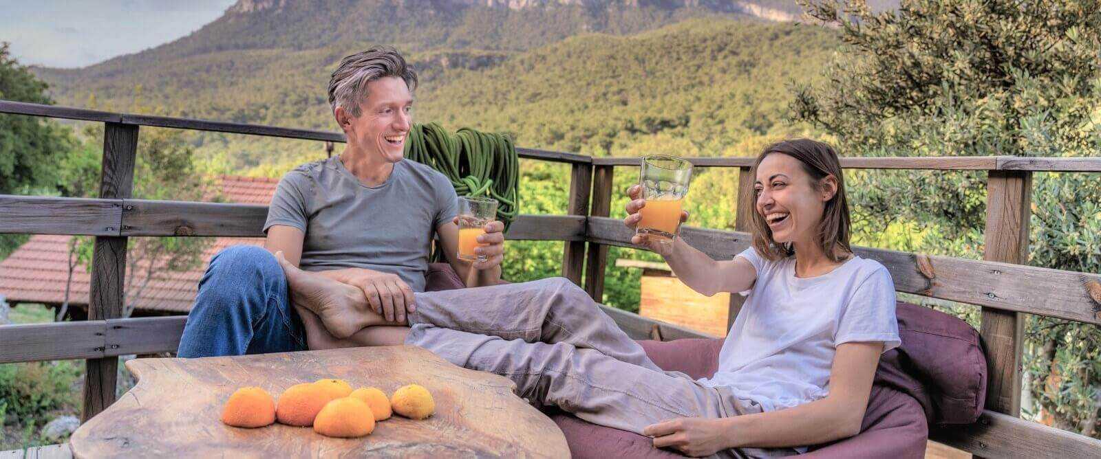 Individually and comfortably built out of wood and stone from the area. We offer various accommodations, from cozy little huts in our pomegranate field to big comfy boutique chalets–we build them all with love!